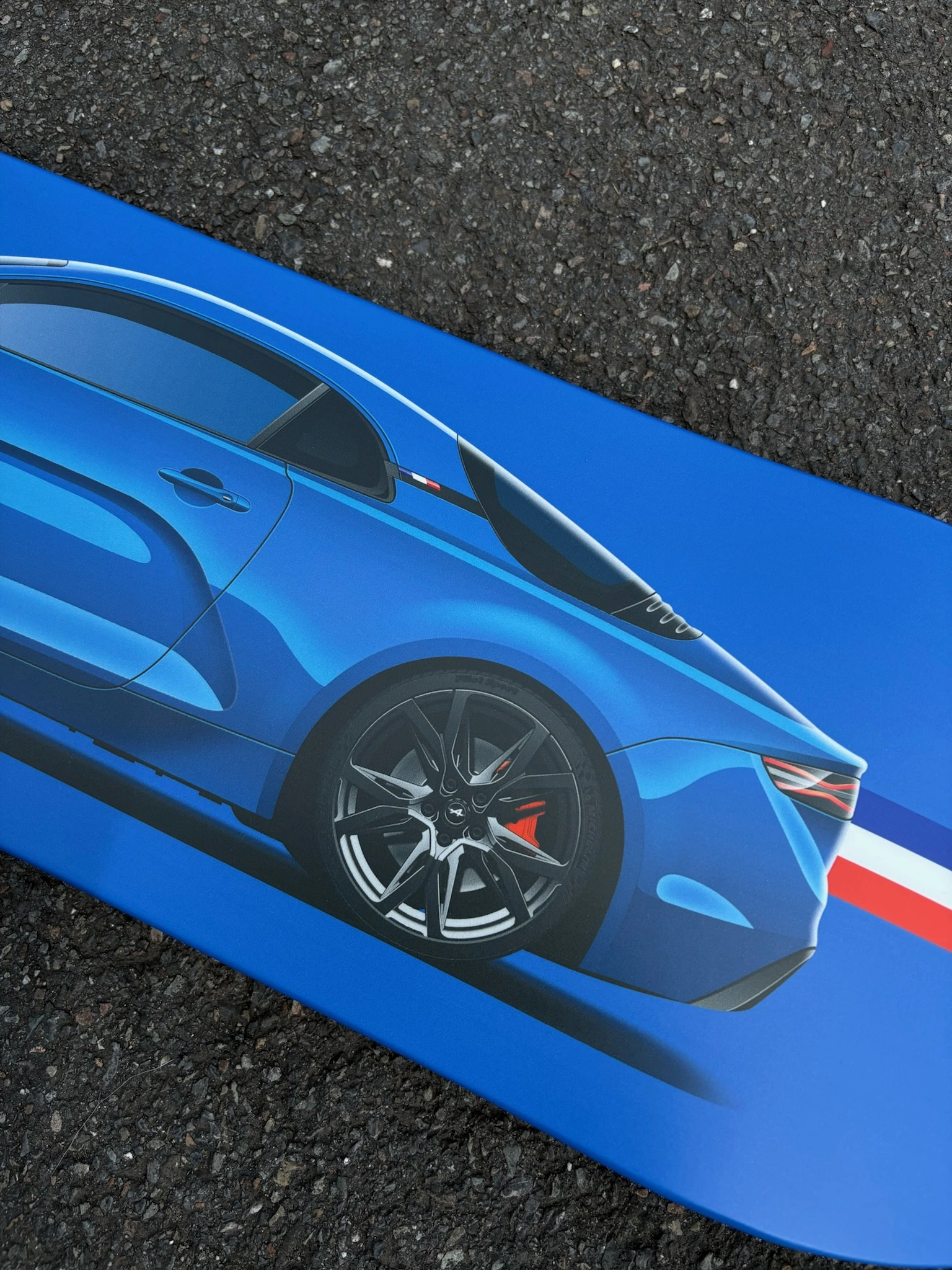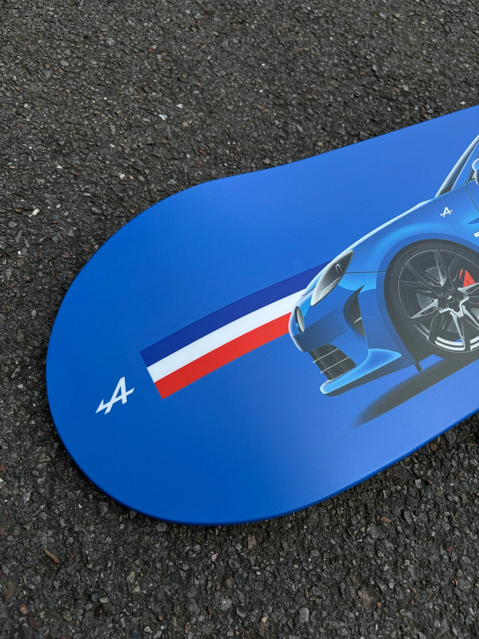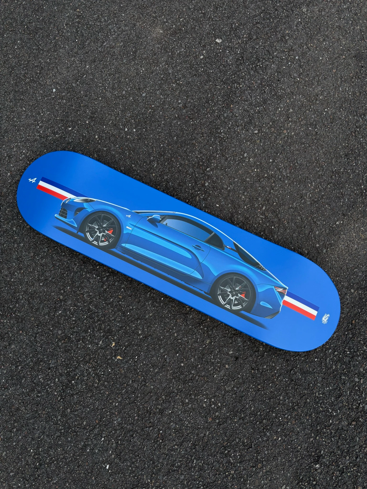🛹 Donnez à votre espace la touche sportive qui lui manque grâce à cette planche de skateboard à l’effigie de l’Alpine A110. Cette décoration murale est un hommage à la passion automobile et représente à la fois la sportivité et l’originalité.