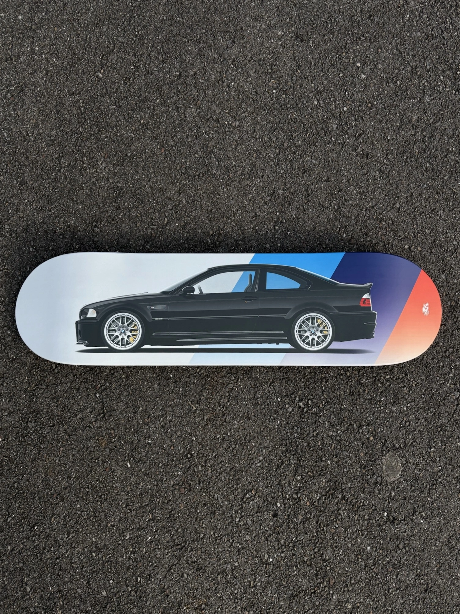🛹 Donnez à votre espace la touche sportive qui lui manque grâce à cette planche de skateboard à l’effigie de la BMW M3 E46. Cette décoration murale est un hommage à la passion automobile et représente à la fois la sportivité et l’originalité.