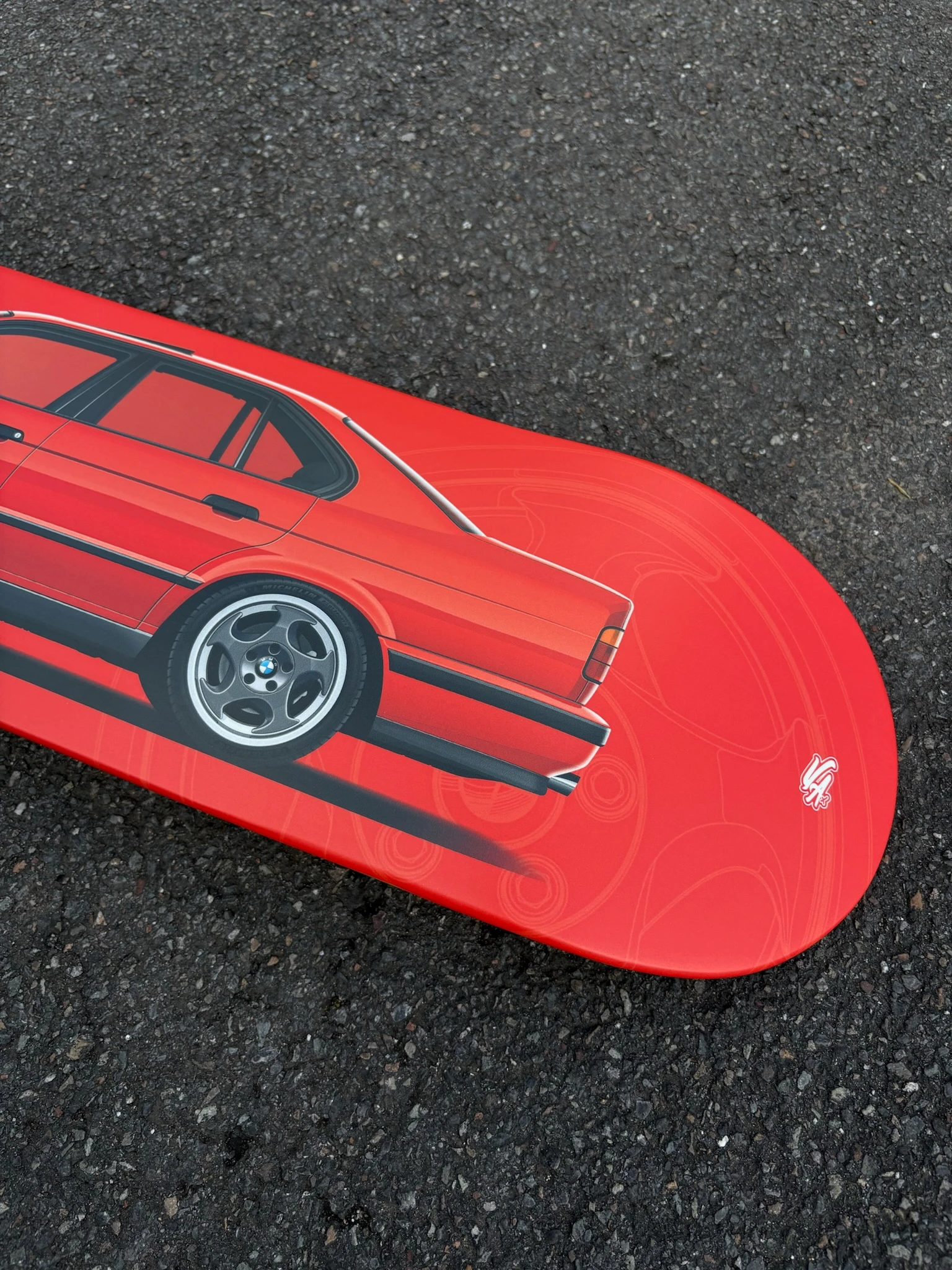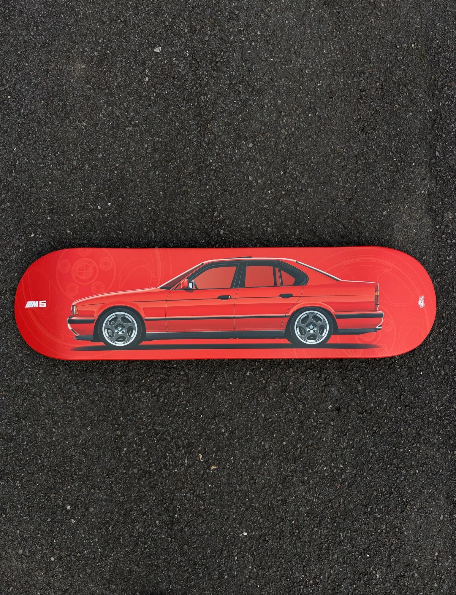 🛹 Donnez à votre espace la touche sportive qui lui manque grâce à cette planche de skateboard à l’effigie de la BMW M5 E34. Cette décoration murale est un hommage à la passion automobile et représente à la fois la sportivité et l’originalité.